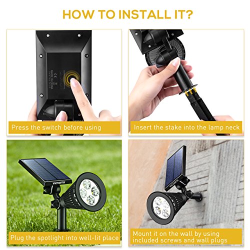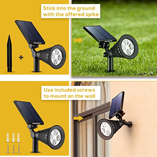 VicTsing 4 Pack Solar Spotlights,The Third Generation 2-in-1 Waterproof Adjustable 4 LED Wall / Landscape Solar Lights with Automatic On/Off Sensor for Driveway, Yard, Lawn, Pathway, Garden