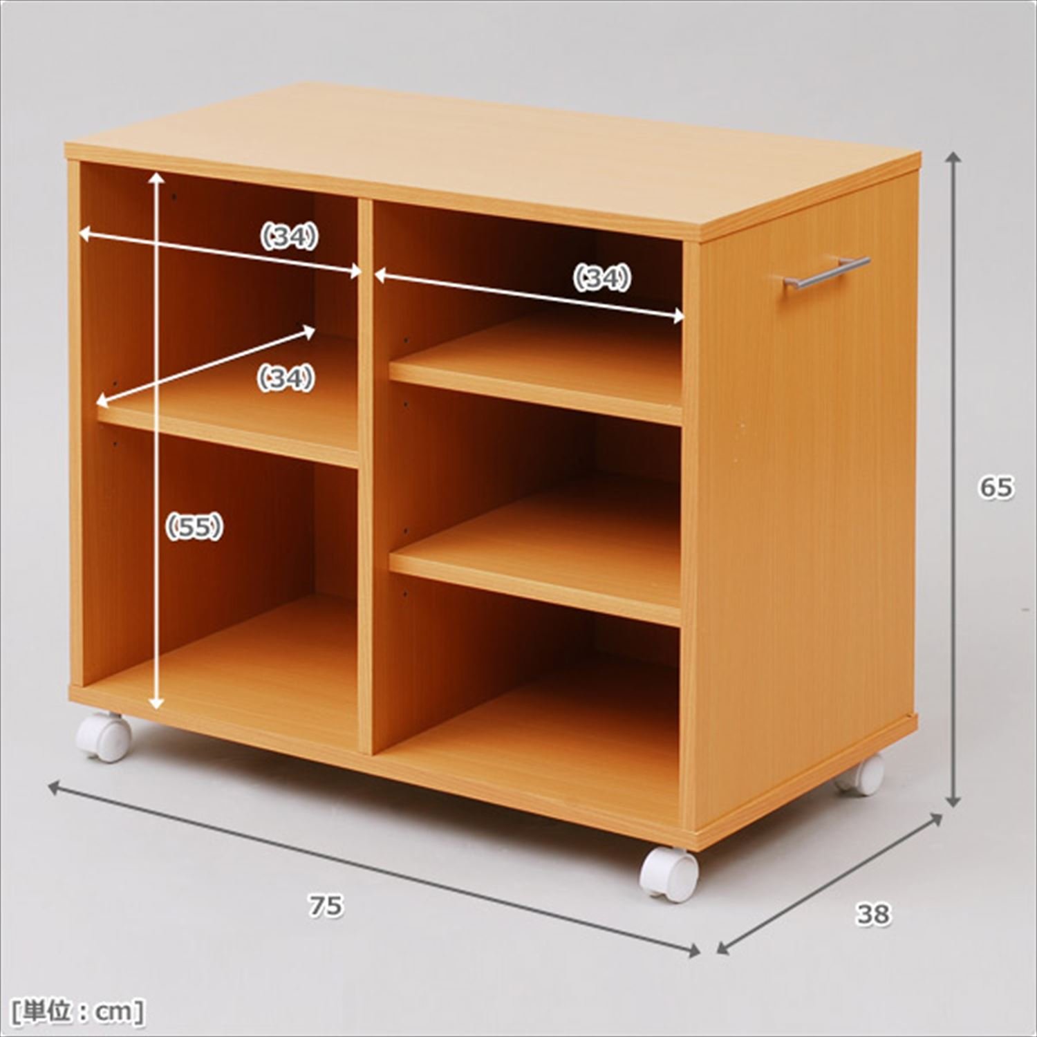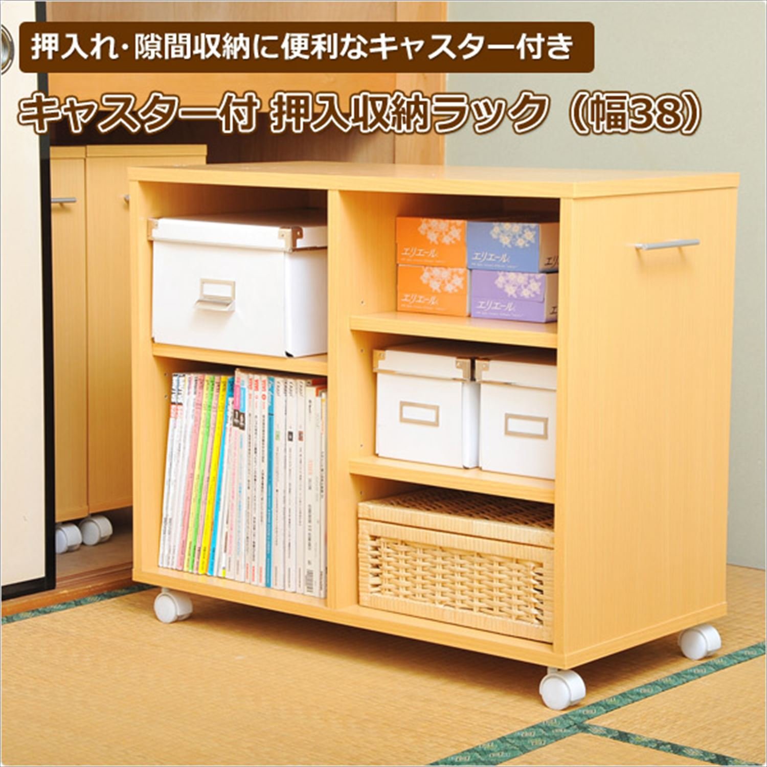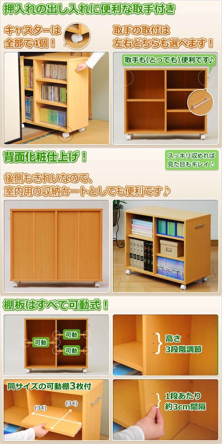 ● Size perfect for closing in the closet (height 65 cm) ● With casters so easy to put in and take out ● Handles can be mounted on either side ● Rear makeup available ● Assembly (Assembly time: about 20-30 minutes)