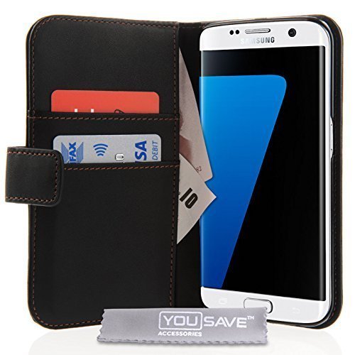 -. Title : Yousave Accessories Samsung Galaxy S7 Edge Case Black PU Leather Wallet Cover