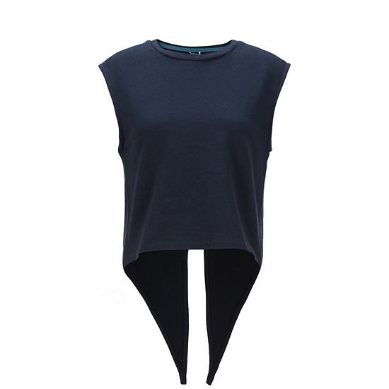 - 크롭 기장의 스타일리쉬한 탑으로 등판 테일 디자인을 적용하여,