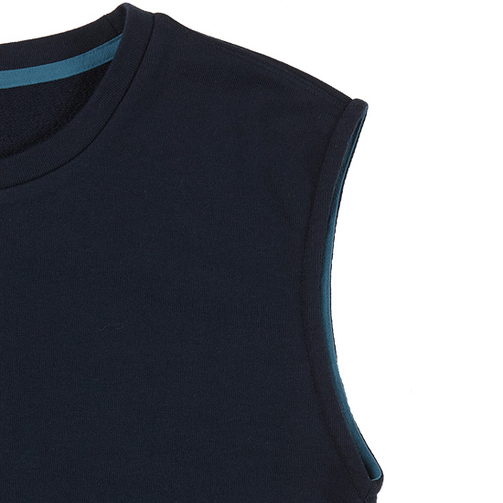 - 드롭 숄더 라인에 슬리브리스 디자인으로 편안한 실루엣이며,