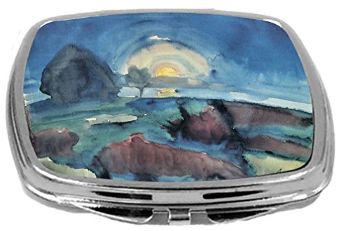 Rikki Knight Compact Mirror, Walter Gramatte Art Hiddensoe Moon Stairway, 3 Ounce