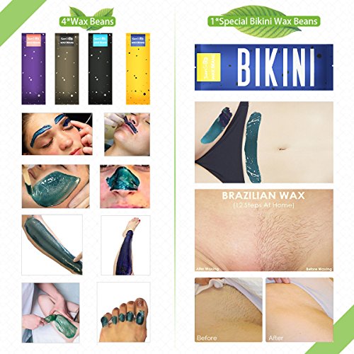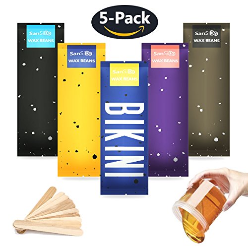 SanSiDo 17.63oz Brazilian Bikini Wax Hard Wax Beans Hair Removal Hot Wax Beads Painless Natural Ingredients Wax 5 Packs for Women and Men