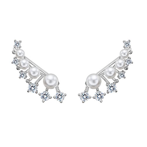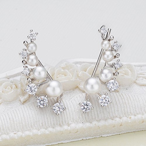 SGS Certified item, EleQueen Original Patented Design, the Highest Quality Standards in Jewelry; Environmental friendly high polished finish geniune 925 Sterling Silver with Simulated Pearls and Cubic Zirconias, this jewelry shines with beauty and adds a luxurious look.