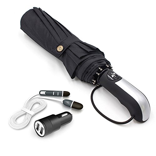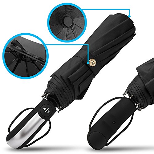 -. Feature : SUPER FAST AUTO OPEN AND CLOSE - Auto open/close function allows for easy one-handed operation. Quickly open and collapse the canopy with the push of a button. You do not have to struggle with the opening your umbrella. the DESEEK umbrella springs open in a second. / QUALITY WORKMANSHIP - Strong metal frame to allow for greater stability in high winds. The ergonomic, slip-proof, and rubberized handle with wrist strap allow for easy carrying. A protective travel sleeve is included. / SUPERIOR WATER-REPELLENCY - Waterproof, instantly dry and protect against UV radiation. The Travel Umbrella defends against the elements like nothing else. / WINDPROOF CONSTRUCTION - The POOKEE umbrella will NOT break under stress - even in the toughest stormy days. The canopy is designed to invert itself and bounce back to its original shape when meeting heavy winds. / WORRY-FREE SERVICE - If your umbrella out of trouble, we will give you a 100% free or full refund, do not need to return!