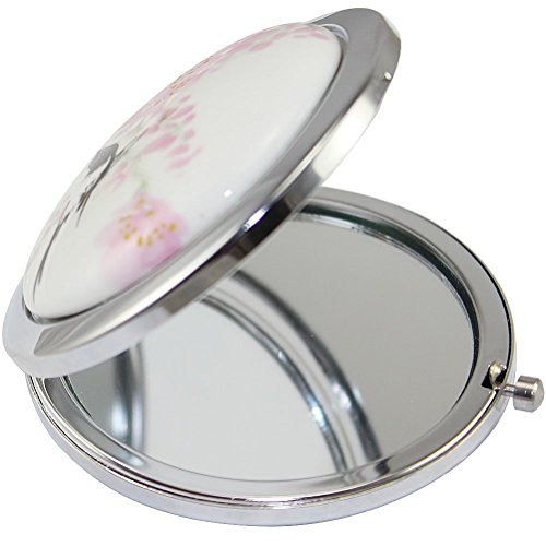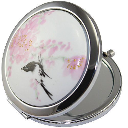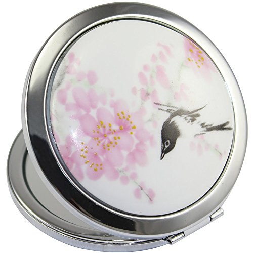 KOLIGHT New Vintage Chinese Landscape Flower Bird Double Sides Portable Foldable Pocket Metal Makeup Compact Mirror Woman Cosmetic Mirror (Flower+Black Bird)