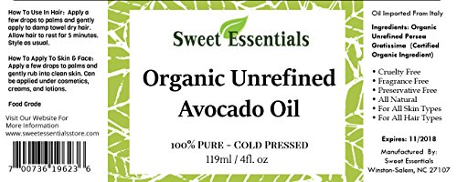Extra Virgin Organic Avocado Oil - 100% Pure | Cold-Pressed | Unrefined - 4oz - Imported From Italy - Raw | NON-GMO | Green In Color