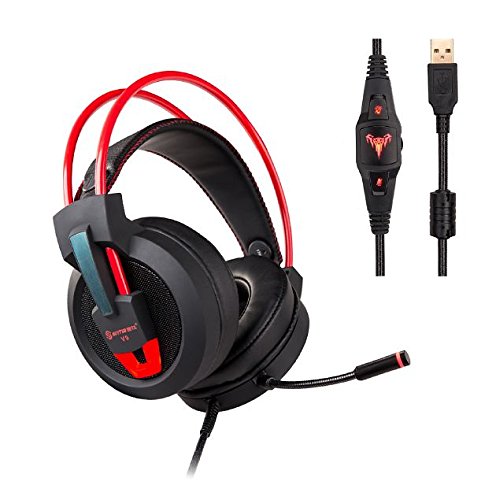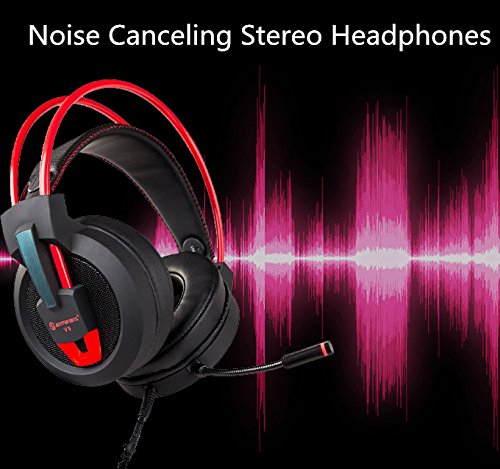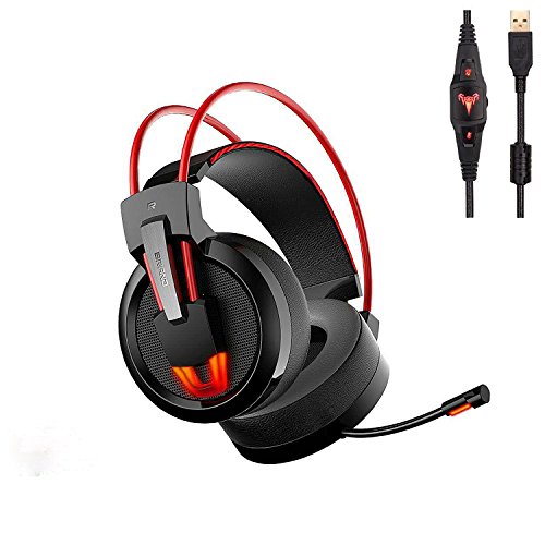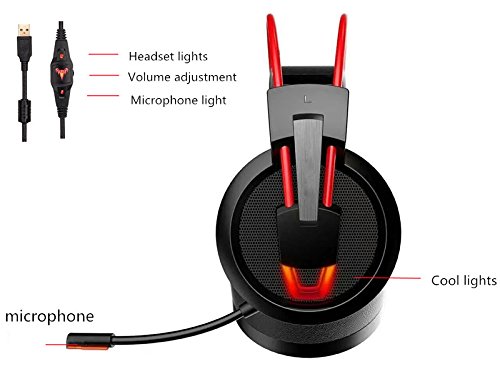 PC Gaming Headset, 7.1 Channel USB Wired Over Ear Noise Canceling Stereo Headphones with Mic Revolution Volume Control & LED Light