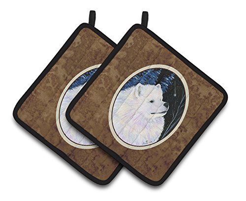Caroline's Treasures Starry Night Samoyed Pair of Pot Holders SS8376PTHD, 7.5HX7.5W, Multicolor