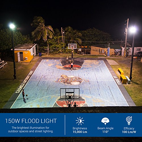 Hyperikon LED Flood Light, 150W (750W Equivalent), 5000K (Crystal White Glow), Waterproof, IP65 Waterproof, 120-277v, Instant On, UL and DLC