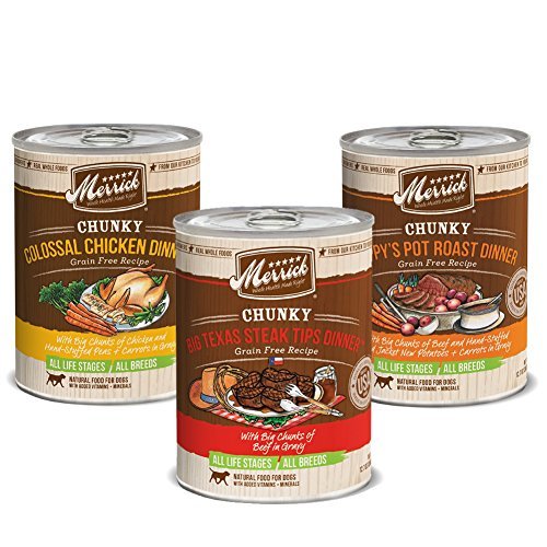 Delicious, home style chunks that your dog will love. Pack of 12, 3 flavors.