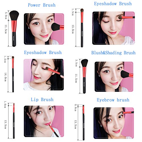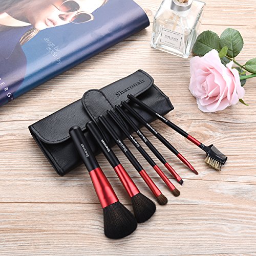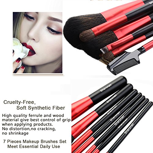 Make Up Brushes, 7Pcs Professional Makeup Brush Set for Women Premium Synthetic Cosmetic Makeup Brushes wtih Eyeshadow, Powder and Lip Brush (Red, Handmade)