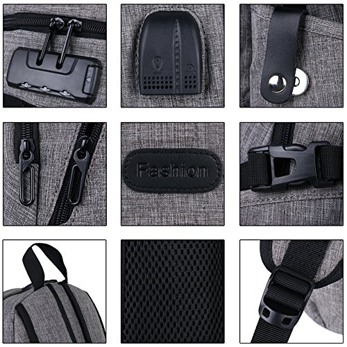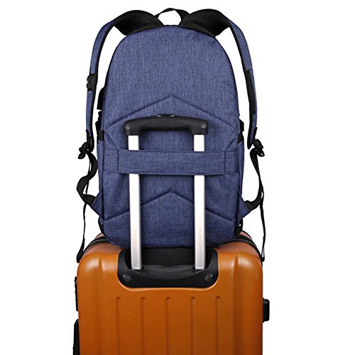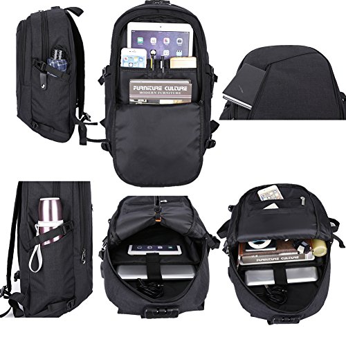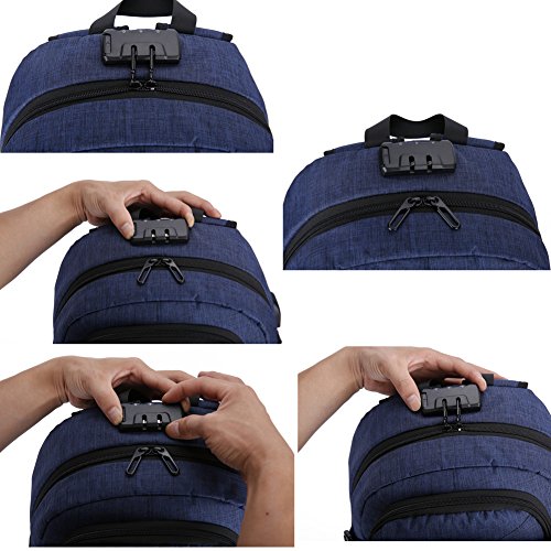 Studio : OUTOS Publisher : OUTOS Product Description Feature: Designed with a trinity anti-theft password lock, easily set of 999 groups passwords for help prevent theft and keep your wallet and other items inside secure while travelling, provides a better private space. Stitching design and modern stylish. It can be used of Shoulder Bag, Laptop Bag or handbag.Suitable for students, Backpackers, tourists and so on. There are 3 MAIN pockets 9 INNER small pockets 2 SEALED SIDE pockets for iPhone, 9 inch iPad,15.6 inch laptop, textbooks, magazines,pen, keys, wallet, books, clothes, bottle,folding umbrella and more. Adjustable shoulder straps, absorbing perspiration and breathable, can effectively relieve shoulder pressure,long-distance travel will not be tired. Extra designing eyeglass strap and net bag,easy to placing small item and eyeglass. With built-in USB and headphones port inside the backpack,by connected with the portable charger and your electronic device,charging as well as entertainment.