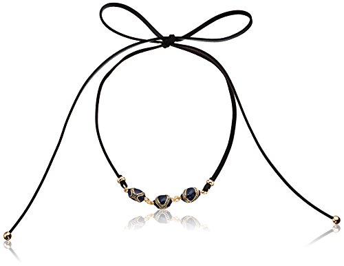 Choker necklace with rich blue beads and an adjustable black faux leather cord. Can be wrapped around the neck multiple times.