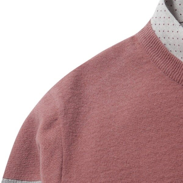 컬러 블록 디자인의 멋스러운 남성 니트.- 도톰한 울혼방 소재로 보온성을 전해줌.- 라운드넥에 핀 도트 셔츠를 레이어드한? 디자인으로 세련된 멋을 연출함.- 소매단,밑단 립조직으로 실루엣을 잡아줌.- 단품만으로 클래식 룩 연출이 용이함.