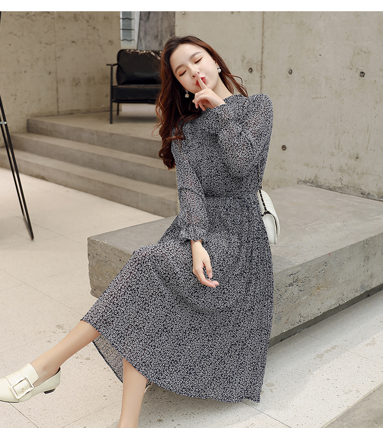 キュートな花柄シフォンAラインワンピース。
