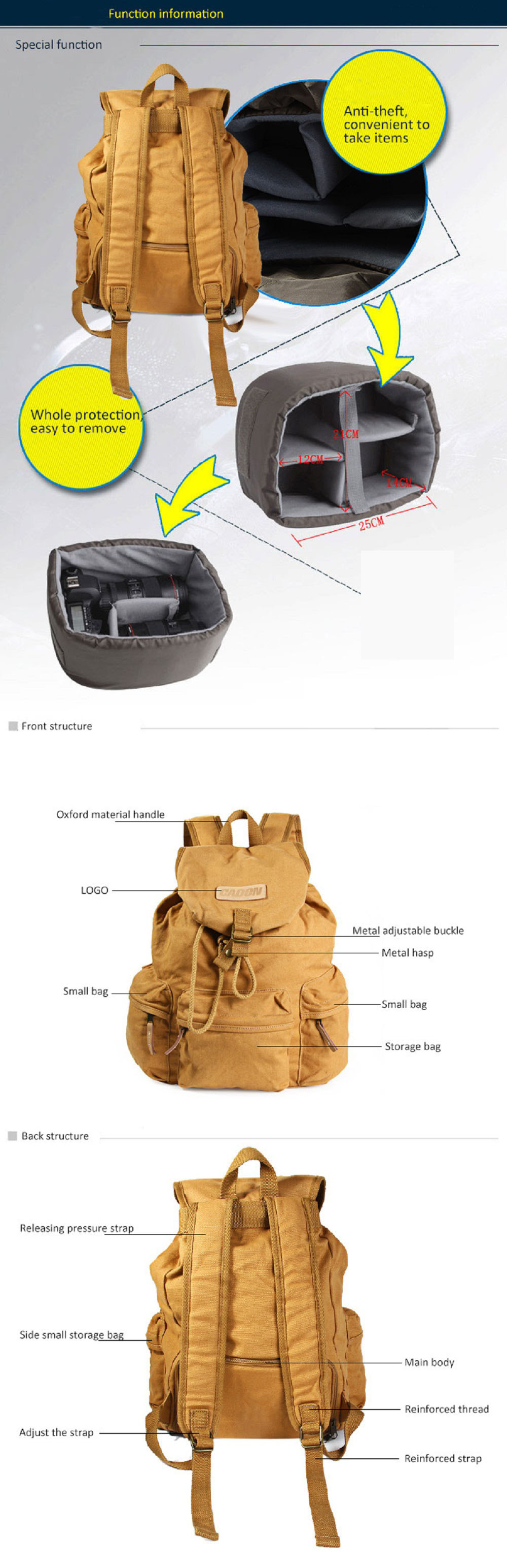 包装内容:1 x帆布背包,1 x内袋,1 x雨罩