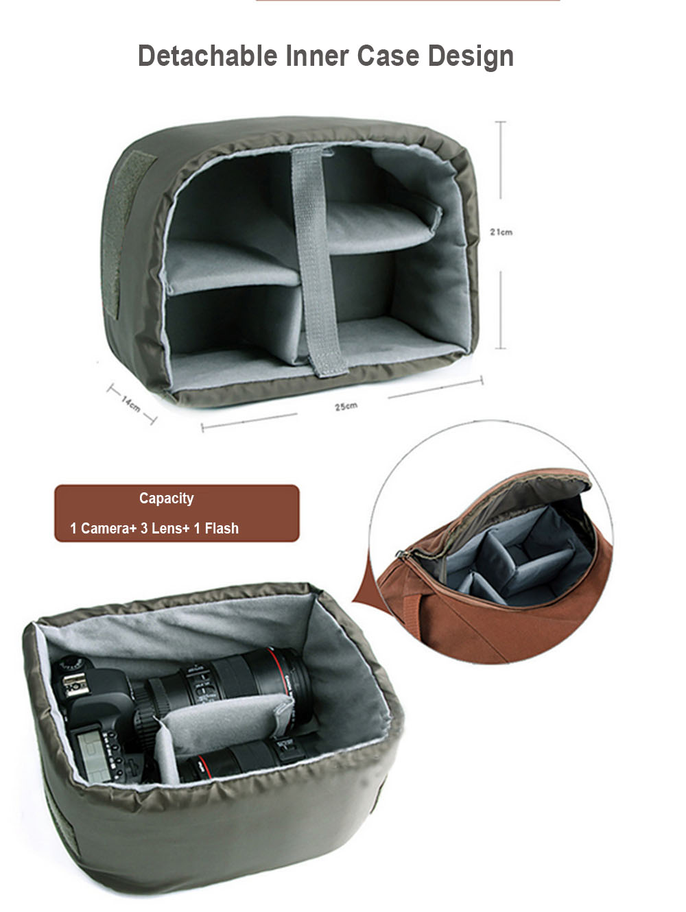 The inside camera liner can also be taken out to used as casual bag.