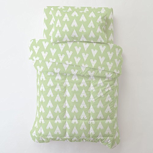 Studio : Carousel Designs Publisher : Carousel Designs Binding : Baby Product Product Description Fitted bottom sheet in Pastel Green and White Teepee. Our fitted toddler sheets feature deep pockets to hug mattresses securely. Fits toddler beds using standard crib mattresses measuring approximately 28" x 52". 0