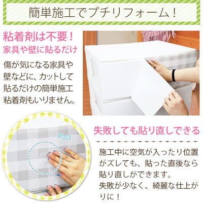 얼룩이나 상처가 신경이 쓰이는 부분이나,심플한 가구 등에 붙여 이미지 체인지!