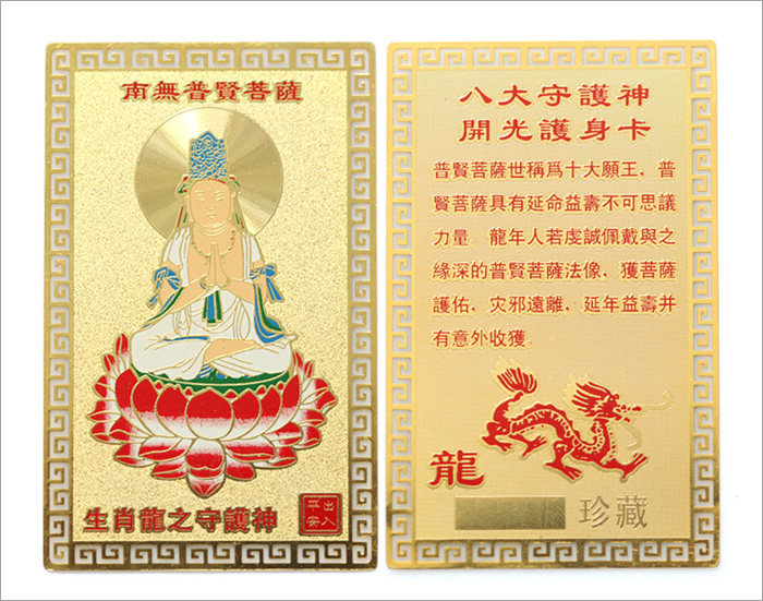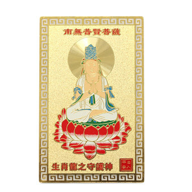 | 产品特点: 普贤菩萨是属龙和属蛇人的本命佛,他以敦煌绢画 普贤菩萨智导行,以行证智,解行并进,完成求佛者的志愿,所以又称"大行普贤菩萨"。普贤菩萨默默的守护龙年和蛇年出生的人,使您实现最大愿望,除掉各种小人,增加领导者的权威,使您人生如愿以偿,幸福美满。因此龙年、蛇年生人,若能虔诚佩戴或供奉与之缘深的普贤菩萨之本命佛法像,能获菩萨护佑,灾邪远离,延年益寿并有意外收获。