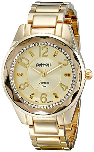 This elegant look from August Steiner features a crystal bezel and genuine diamonds on the dial. Powered by Swiss quartz movement this watch is an eye catcher for anyone who sees it.Feature