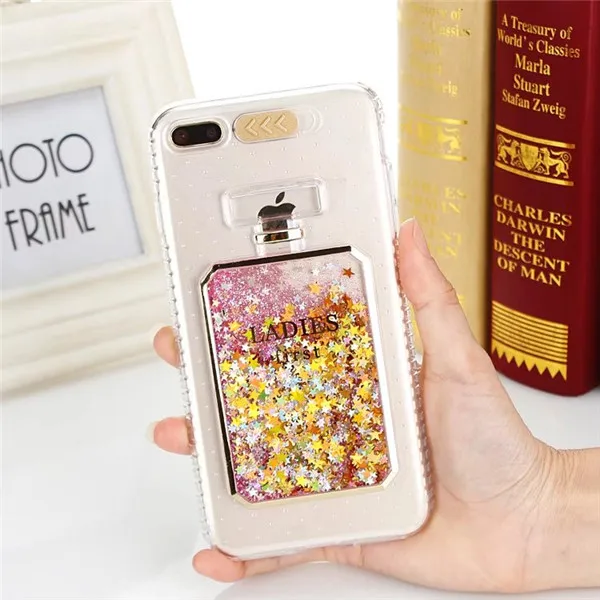 Feature One:Shiny Glitter Liquid Quicksand Case+Perfume Bottle cover