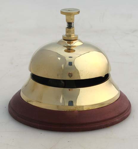 -. Binding : Kitchen -. Brand : ITDC -. Color : Brass -. Feature : Solid Brass Bell On Hardwood Base / Base is 3.75" in Diameter / Perfect To Call for Attention in Any Setting / Material: Brass & Wood / Handcrafted by Artisan -. IsAutographed : 0 -. Label : ITDC -. Manufacturer : ITDC -. Model : BR1856 -. MPN : BR1858 -. PartNumber : BR1858 -. ProductGroup : Home -. ProductTypeName : HOME -. Publisher : ITDC -. Size : 3 3/4" -. Studio : ITDC -. Title : Solid Brass Front Desk Bell 3.75" on Wood Base Hotel or Counter Service