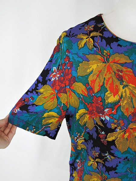 Ladies ブランド カラー黒・緑・紫・赤・黄 メール便不可 コンディション★★★ 素材レーヨン 表記サイズ8 スタッフコメント後ろはティアドロップホール仕様 実寸サイズ 着丈 62 cm 身幅 46 cm 肩幅 39 cm 袖丈 25 cm ※ウエスト・ヒップ以外は平置き採寸