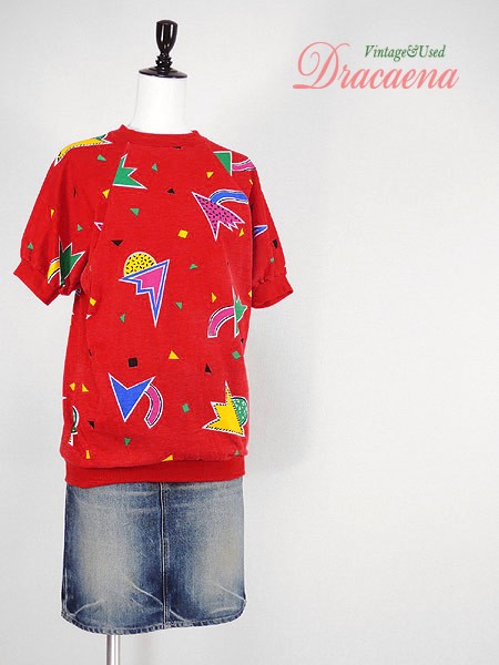 80sらしい色々な幾何学模様の総柄。USA製。