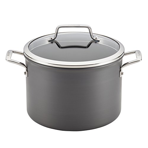-. Feature : This gourmet cookware features heavy-duty hard-anodized construction for commercial-quality heat distribution and superior culinary performance / Dishwasher safe, with triple-layer DuPont autograph 2 nonstick interiors for metal utensil safe cooking with exceptional food release / Oven safe to 500 degrees Fahrenheit, innovative triple-riveted sure rest stainless steel handles feature finger guards to boost control and stability / The hard anodized cookware set's covered pieces feature elegant, shatter-resistant stainless-steel-rimmed glass lids to seal in heat and moisture / Lifetime warranty included, Anolon authority is the culinary partner every home chef desires, and the ideal companion for other Anolon kitchenware