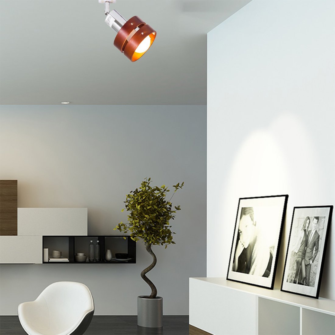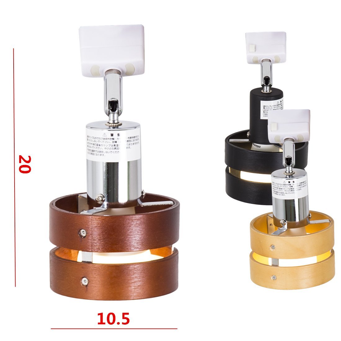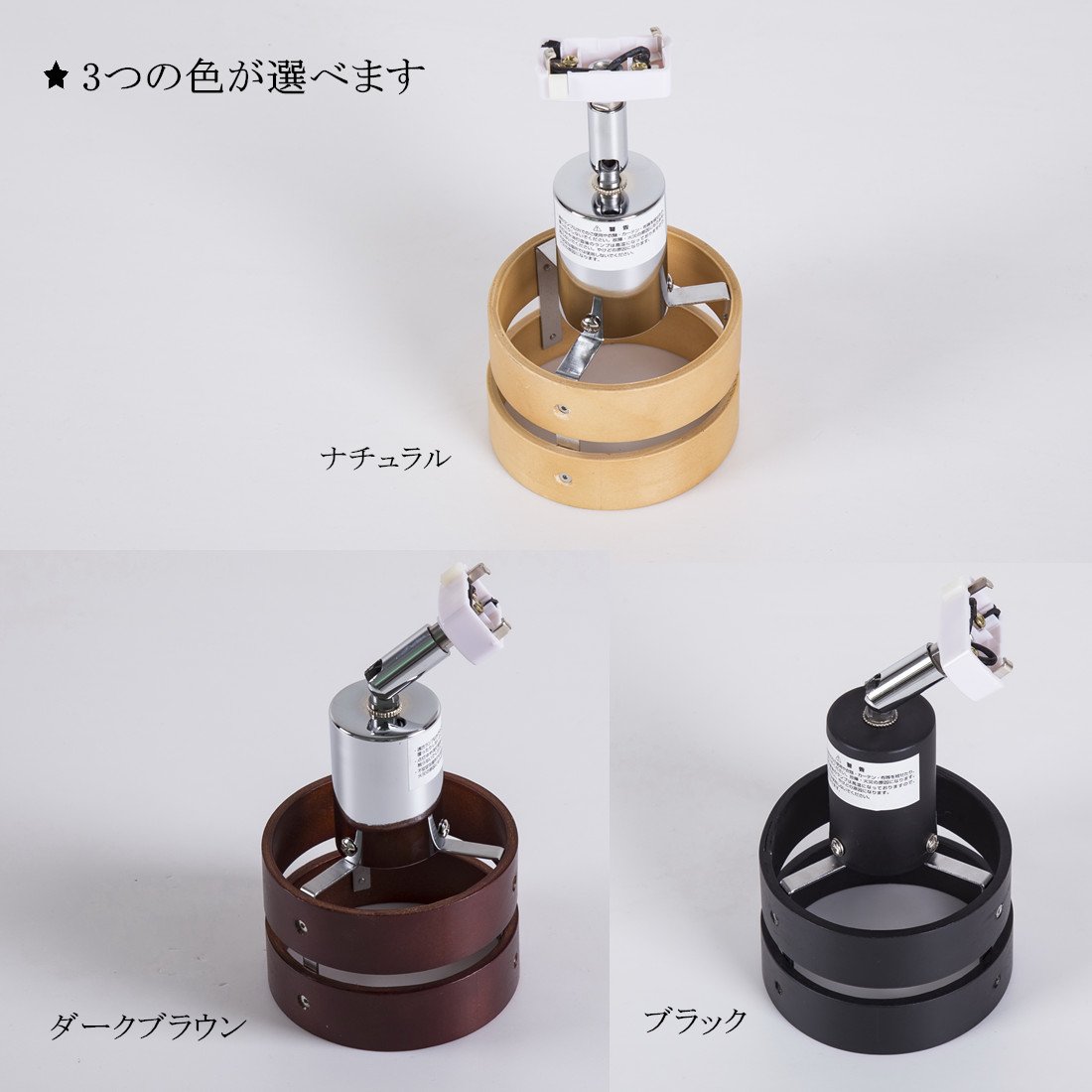 ■ Spot light of ceiling connection hooking, combining wooden two-piece shade with body of chrome plating.