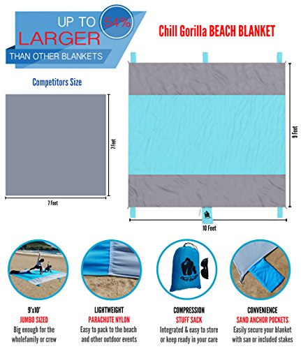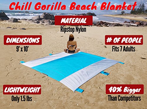 Studio : Chill Gorilla Publisher : Chill Gorilla Binding : Misc. Product Description #128309; Chill Gorilla, a US-Based company. 100% Customer Satisfaction Rating THE PERFECT BEACH BLANKET It's really big, packs really small, super lightweight, and is easy to setup! MUCH BIGGER AND BETTER THAN THE COMPETITION 40% BIGGER than other blankets! EVOLUTION - 100% RipStop Nylon. Super strong and durable QUALITY - We'll take on any competitor in a side by side comparison DESIGN - Quick and easy setup. Reinforced corners. Tie down loops. Everything you need PRECISION MANUFACTURING ensures you can count on your gear PRICE - A Kanga Pocket Blanket breaks the bank and gives you 80% less coverage MULTIPLE USES Beach / Picnic Blanket Camping / Shade / Base Tarp / Wind Break Park, Concerts, Festivals, Tanning, Yoga, Travel CHILL GORILLA BEACH BLANKET 1 X STUFF SACK with drawstring for easy storage PRODUCT SPECIFICATIONS 1 BLANKET 9' x 10' MATERIAL: 100% Ripstop 210D PArachute Nylon. Triple Stitched. 5 POCKETS 1 COMPRESSION SACK CARRYING POUCH WEIGHT: 1.5 LBS. ?HASSLE FREE BUYING. We stand behind every product in the amazon.com/shops/venjoin store. If you have any issues, contact us to receive personal care and attention to resolve your concerns. #128308; WARNING: As a fast growing Start Up Company it can be hard for us to keep our inventory in stock as we develop good capital flow. If you see it available, buy now! 0 |