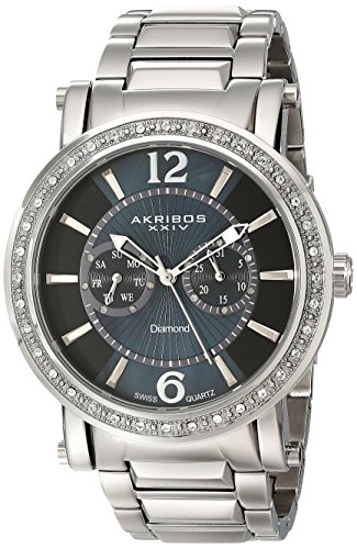 -. Title : Akribos XXIV Men's AKR465SS Ultimate Stainless Steel Swiss Day and Date Diamond Watch