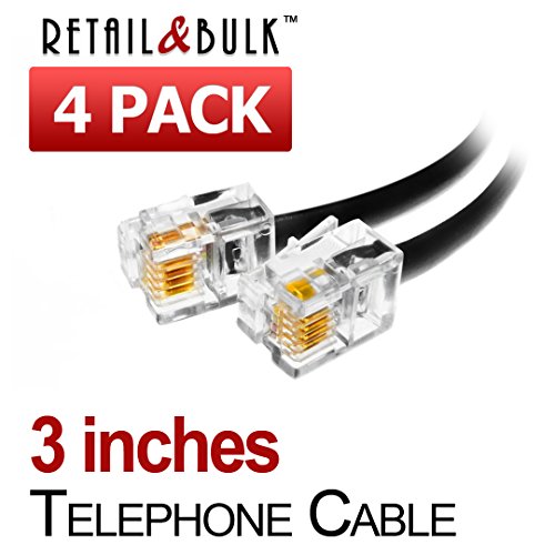 (4 Pack) 3 Inch Short Telephone Cable Rj11 Male to Male 3", Phone Line Cord (Black)