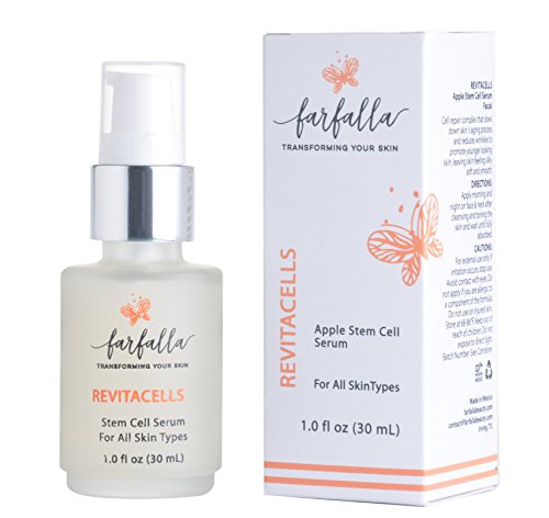 -. Feature : REVOLUTIONARY Anti-Aging Cell Repair Complex that slows down the aging process and REDUCES WRINKLES and fine lines to promote younger looking skin, leaving skin glowing and feeling silky, soft, smooth and revitalized with a TIGHTENING face lift or tight skin effect, no more sagginess! / HOW IT WORKS - The premium apple stem cells advanced biotechnology effectively stimulates and RESTORES COLLAGEN production and other cellular proteins, helping relax, and reduce fine lines and wrinkles. PROTECTS against oxidative stress, repairing and improving your skin's ELASTICITY for skin REJUVENATION. No wonder why HOLLYWOOD stars and Michelle Obama use apple stem serums! / REVITACELLS literally REGENERATES SKIN CELLS and has ANTIOXIDANT properties and a peptide complex with MORE concentrated active ingredients for a POWERFUL AGE-FIGHTING boost! Helps skin cells maintain their capability of building new tissue, helping firm, lift and diminish the appearance of fine lines and wrinkles of your skin. / Provides high quality and BALANCED HYDRATION delivering the right amount of moisture, not-greasy, lightweight and fast absorbing giving you a radiant, luminous youthful look. You will find IMPROVEMENTS in your skin's texture, you will immediately feel it is smoother, silky soft and refreshed; and over time you will see improvements in elasticity, firmness, sagginess, fine lines and wrinkles. / It is simply the BEST nourishing booster serum with AGELESS ACTIVATORS, perfect addition for your SKINCARE & BEAUTY routine! NO RISK, you love it or your money back! We at Farfalla Beauty want to provide the best costumer service for happy costumers.