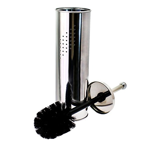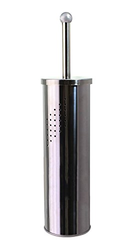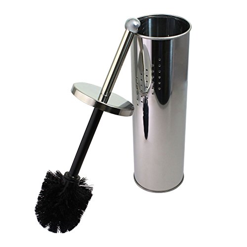 JustNile Stainless Steel shiny finish Chrome Toilet Brush with Vented Hideaway Canister Holder Set - Knobbed Handle Tip