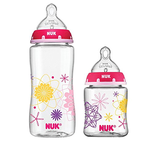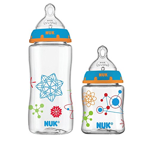 -. Feature : Natural shape supports combining breast and bottle feeding / Advanced Orthodontic Nipple fits baby's mouth like mom's when breastfeeding / NUK 1-piece Anti-colic Air System helps prevent colic, spit-up and gas / Easy to clean, dishwasher safe; Glass-like clarity, shatterproof / 10 Ounce & 5 Ounce; BPA free