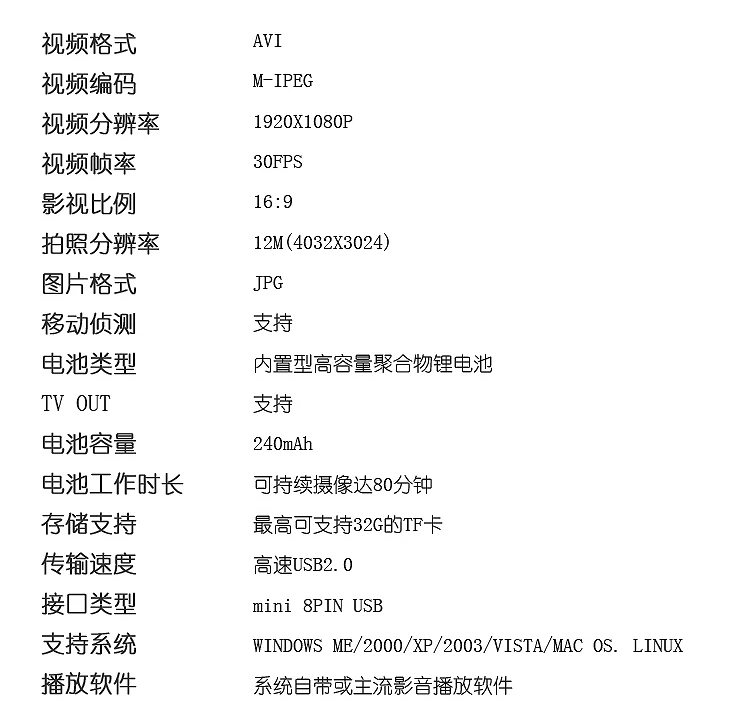 Function:Video/Record/PC Camera/Take Pictures/Motion Detecting