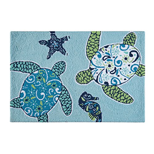 A staple for any turtle lover, this Imperial Coast sea turtle accent rug boasts stylized sea life graphics on a background of gorgeous blue!