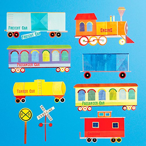 -. Feature : Includes 7 peel and stick train wall decals and 9 sign wall decals / Each train decal measures 11" x 8" to 16" x 7" and 9 sign decals measure 3-1/2" x 1" to 9" x 4". / Removable and repositionable. / Easy to remove and safe for most surfaces. / Leaves no sticky residue.