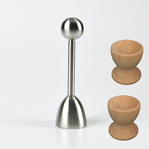 New Egg Shell Topper JJMG Stainless Steel Cracker Easter Premium Kitchen Tool for Removing Raw, Soft or Hard Boiled Egg Shells, Separate Cut the Top of the Shell Smooth Round Opening + 2 Wood Cups
