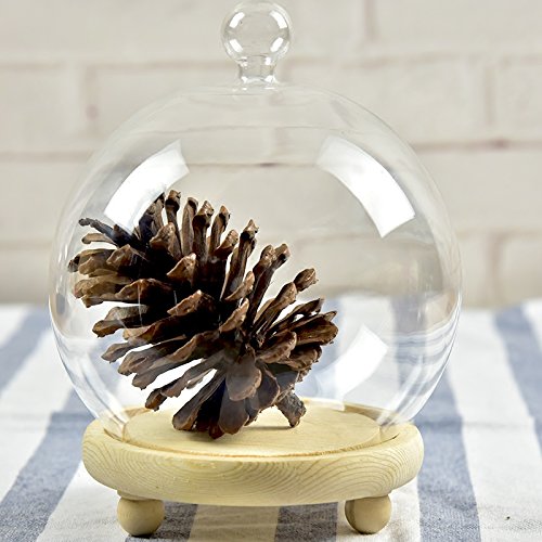 Siyaglass Clear Glass Cloche Globe Display Dome with Wooden Base Dia 5.9 inch