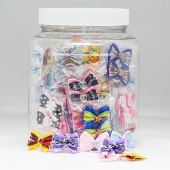 -. Binding : Misc. -. Brand : Dog Fashion Spa -. Color : Multi -. EAN : 0850263004471 -. Feature : Dog Fashion Spa bows are a favorite among dog groomers and dog parents! / Hair bows come in separate packets that include two matching hair bows for dog hair / 50 packets in a jar, total 100 bows / Assorted colors and hair bow styles give plenty of options for any occasion and dogs of any color / Imported -. Label : Dog Fashion Spa -. Manufacturer : Dog Fashion Spa -. PackageQuantity : 100 -. ProductGroup : Pet Products -. ProductTypeName : PET_SUPPLIES -. Publisher : Dog Fashion Spa -. Studio : Dog Fashion Spa -. Title : Dog Fashion Spa Assorted Hair Bows for Dogs, 100 Count, 50 Matching Pairs -. UPC : 850263004471