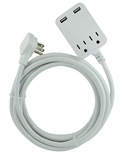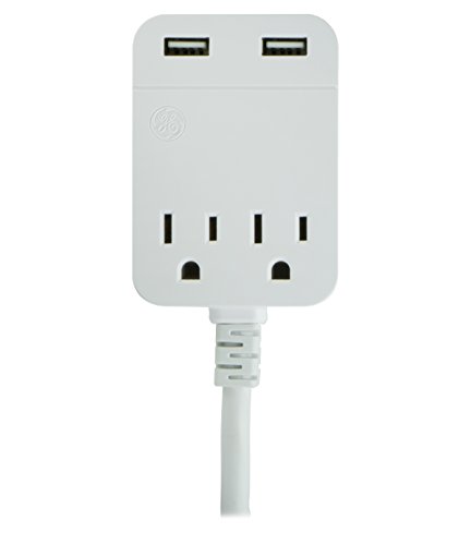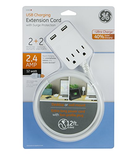 GE USB Charging Extension Cord with Surge Protection, 2 Outlet, 2 USB, 2.4A/12W, 12 ft. Cord, White, 32089