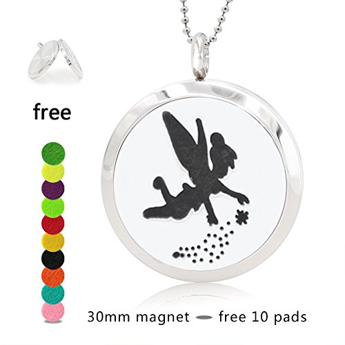 Silver Essential Oil Diffuser Necklace- YouMiYa Cute Elf Shape Aromatherapy Essential Oil Diffuser Locket Magnetic Perfume 316L Stainless Steel Pendant Funny...