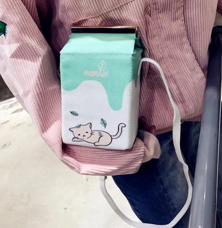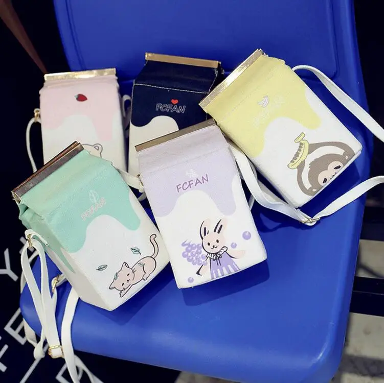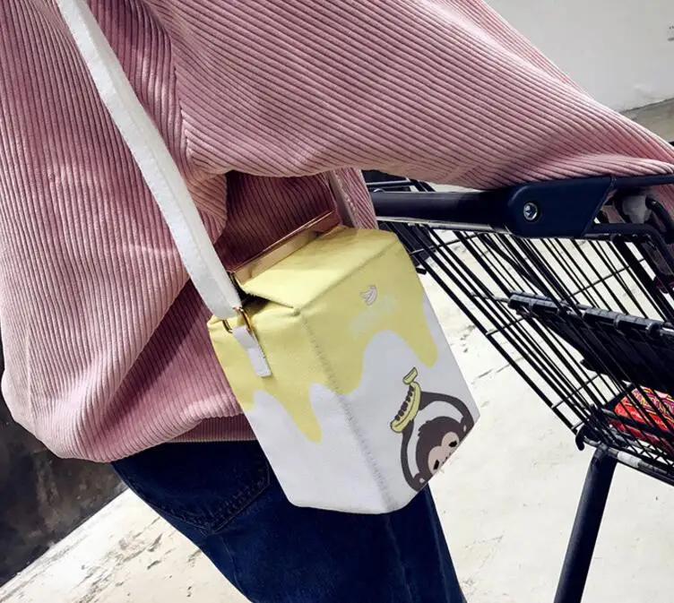 Design:Milk box clutch bag printing animals