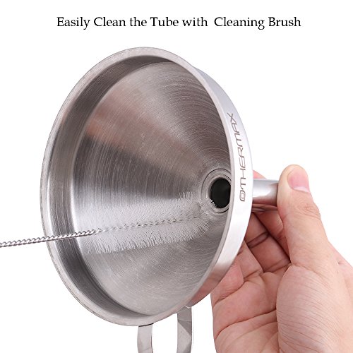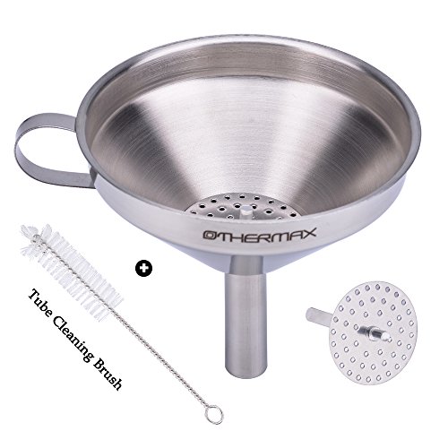 - EASY TO CLEAN AND STORE: OTHERMAX'S Stainless steel funnel is easy to store save space, the ergonomic handle for hanging in your kitchen cabinets. It is easy to clean up after use. Just put it into dishwasher or simply wash with soapy water.