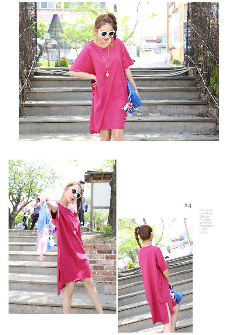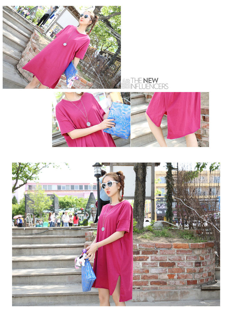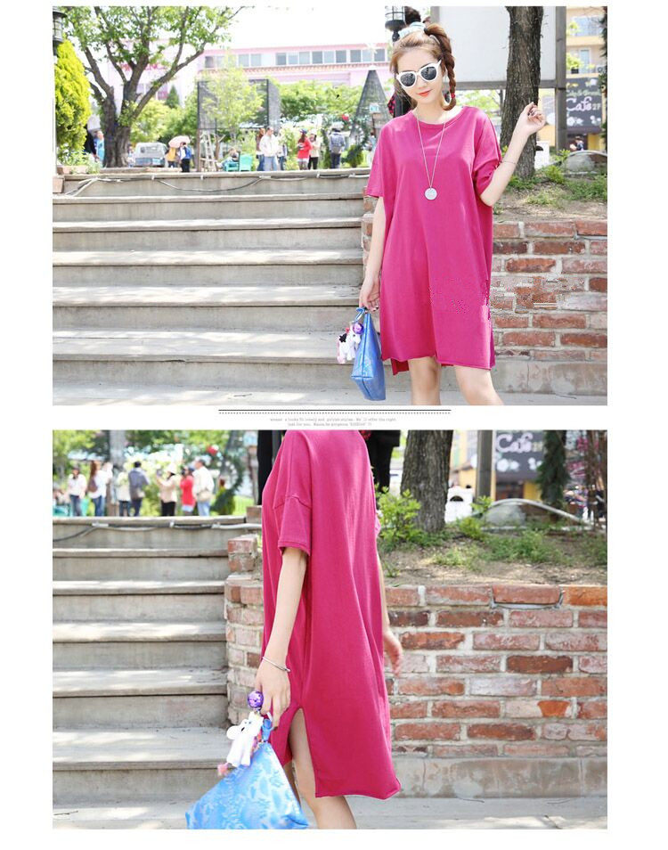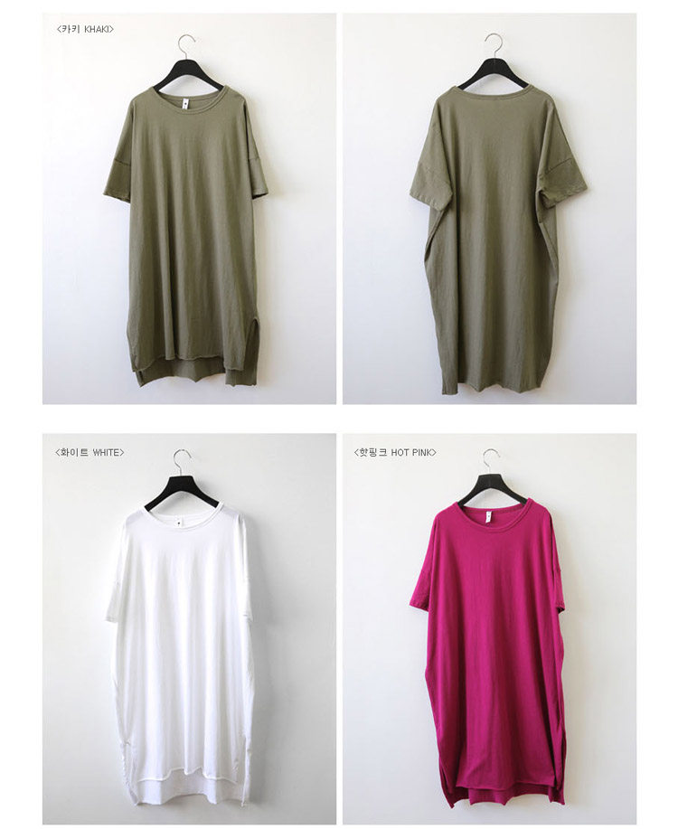 Treasurer recommended | SummerKorean-style Plus-sized Women's Top simple solid color slit casualcompassionate loose in the long section short-sleeved t-shirtdress | |