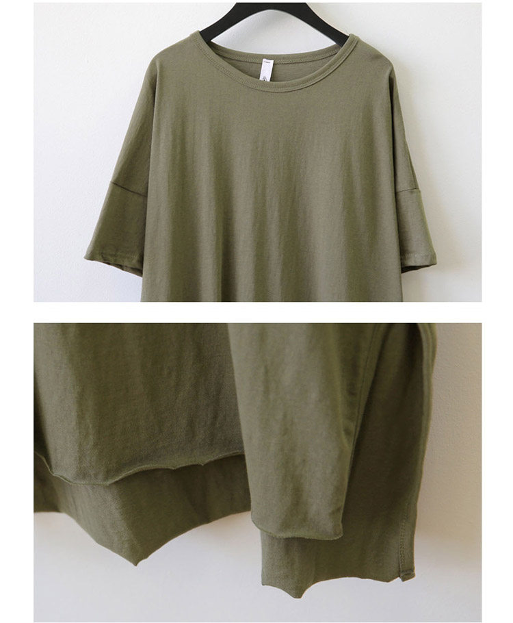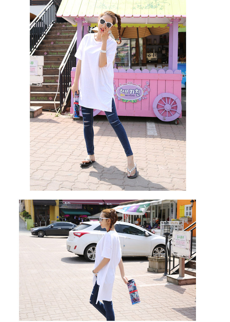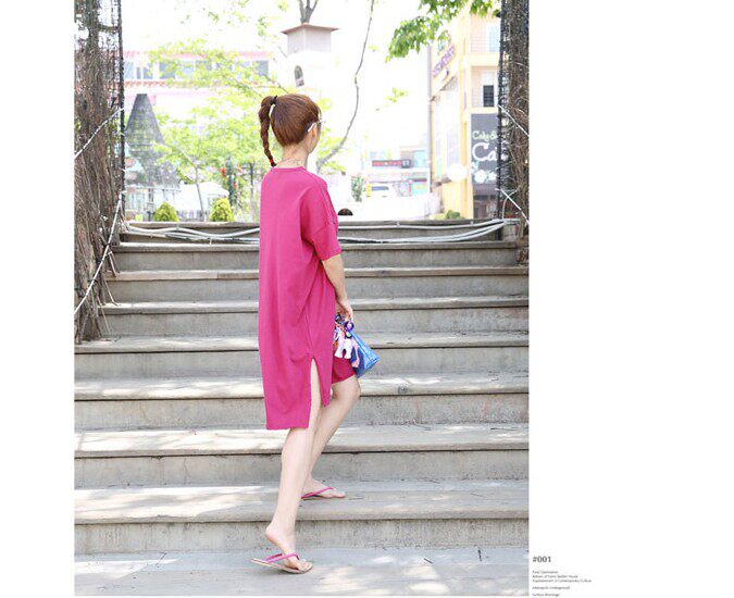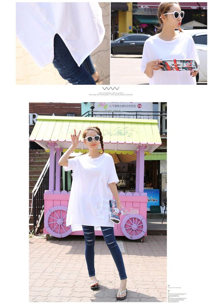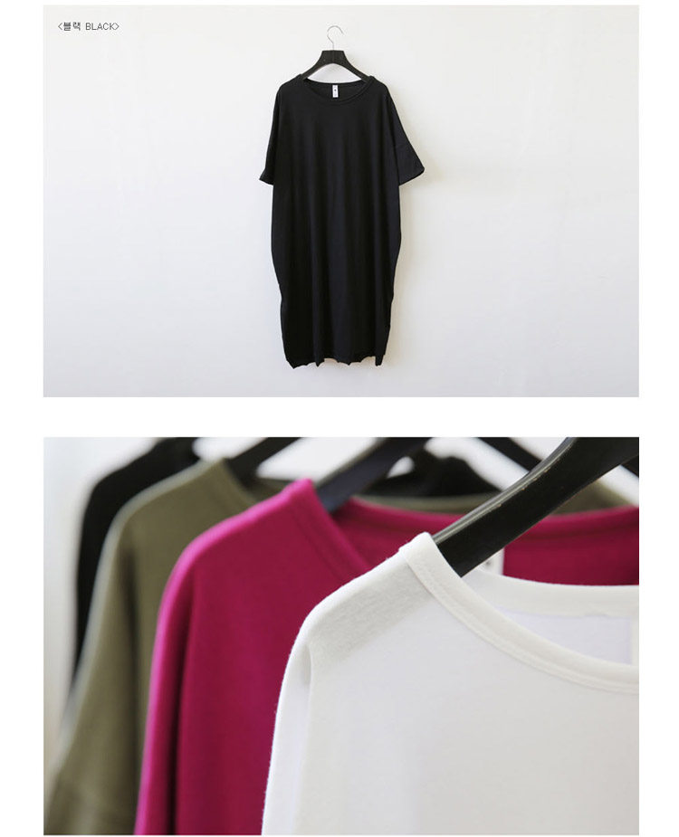 Treasurer recommended | SummerKorean-style Plus-sized Women's Top simple solid color slit casualcompassionate loose in the long section short-sleeved t-shirtdress | |